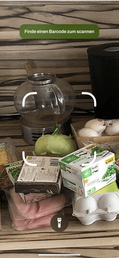Richte die Kamera auf dein Produkt. Unsere KI analysiert die Lebensmittel auf deinem Bild und pflegt diese automatisch ein.*