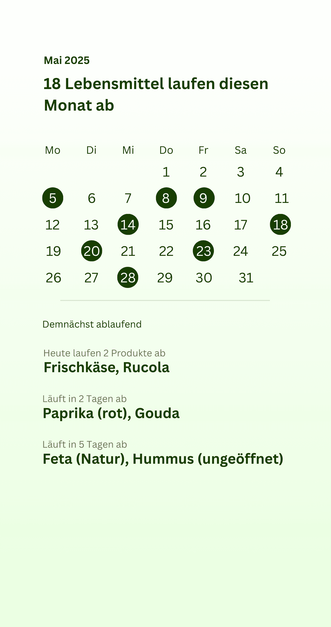 Rechtzeitig vor Ablauf melden wir uns mit Push‑Hinweis und passenden Rezeptideen. Du nutzt alles, was du eingekauft hast.